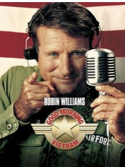 Good Morning, Vietnam by Description: Robin Williams plays a raucous, improvisational d.j. who takes over the Armed Forces Radio Saigon morning broadcast, winning popularity among the soldiers but eventually incurring the wrath of higher-ups when he starts telling the truth about the horrors of the war. Stars Robin Williams, Forest Whitaker, Tung Thanh Tran, Chintara Sukapatana, Bruno Kirby, Robert Wuhl, Noble Willingham, J.T. Walsh, Richard Edson, Juney Smith, Richard Portnow, Floyd Vivino