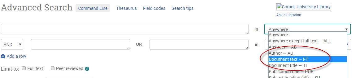 Depending on your topic, finding studies and data on Myanmar can be challenging. One way to increase your success is to do full text searching. Google Scholar and Proquest Research allow you to search the full text of articles, as well as the citations. Google Scholar does this by default, while in Proquest you should 1. first select all databases and then advanced search. 2. Then select "Document Text--FT" to search full text.